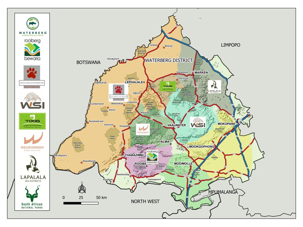 The Waterberg Landscape Alliance is a public benefit organisation bringing together landowners, communities, and partners to drive landscape-scale conservation, safeguard biodiversity, promote resilience, and secure a sustainable future where people and wildlife thrive together.