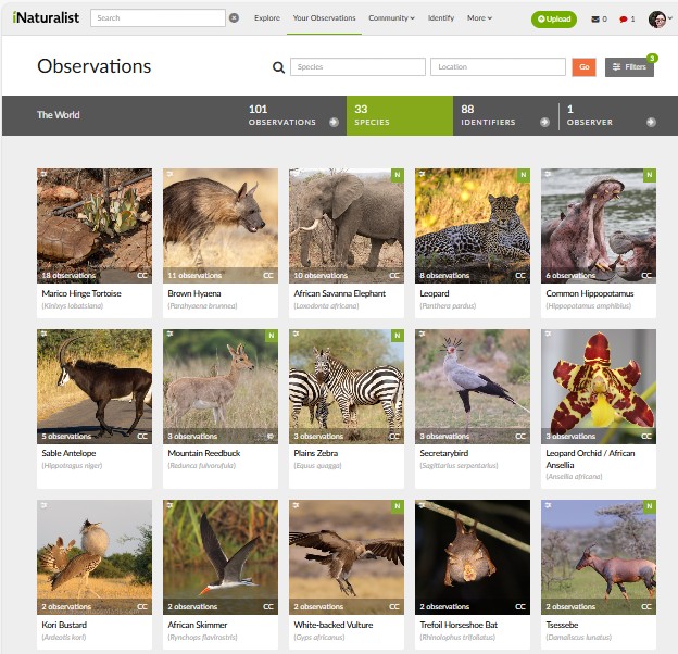 On the desktop version of iNaturalist, you have full access to the global database of observations. Here you can review your own records, see how the community has identified them, and explore observations submitted by others — whether across the world or within a specific property, reserve, or region. Powerful filtering tools allow you to search by taxonomic group, location, date, or conservation status, including threatened species. You can also contribute to the community by helping to identify other users’ observations.